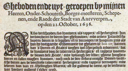 Gheboden ende uyt-geroepen … den 21 october 1636: Alsoo … brouwers, als tappers, ende herbergiers…